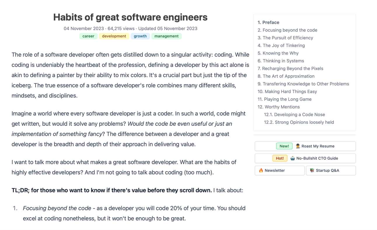 Today’s article is titled “Habits of great software engineers“ and is written by Vadim Kravcenko, I think this is a great article for all the engineers reading this newsletter as it gives great tips and insights on how to be efficient in this Efficiency hungry industry.